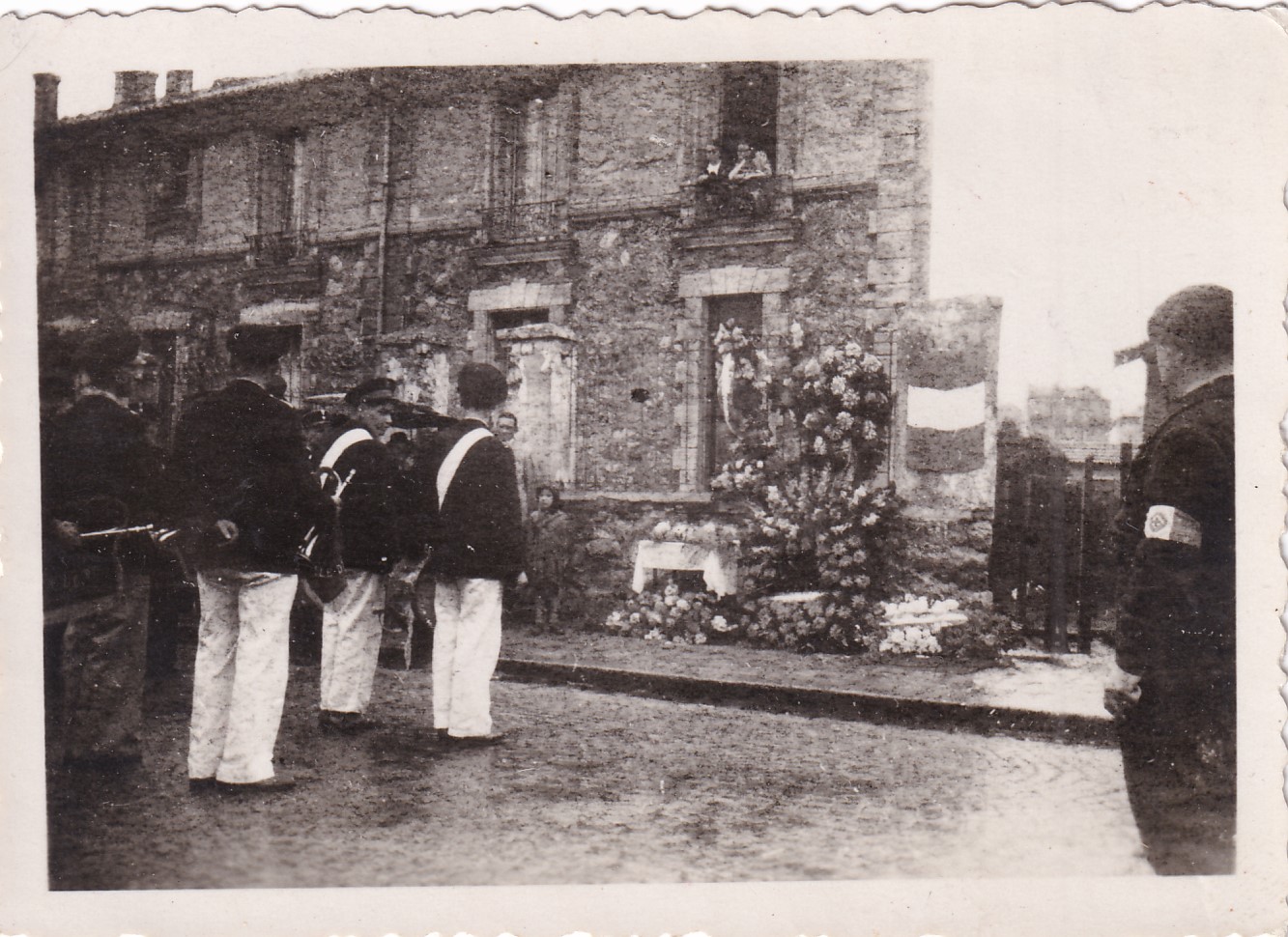 Le soir du 18 avril 1944, lors du bombardement, Arthur est parti rejoindre l’équipe de la Défense passive. La famille se réfugie dans la cave de l’immeuble situé de l’autre côté de la rue. Un morceau d’avion canadien tombe sur la pavillon qui prend feu.