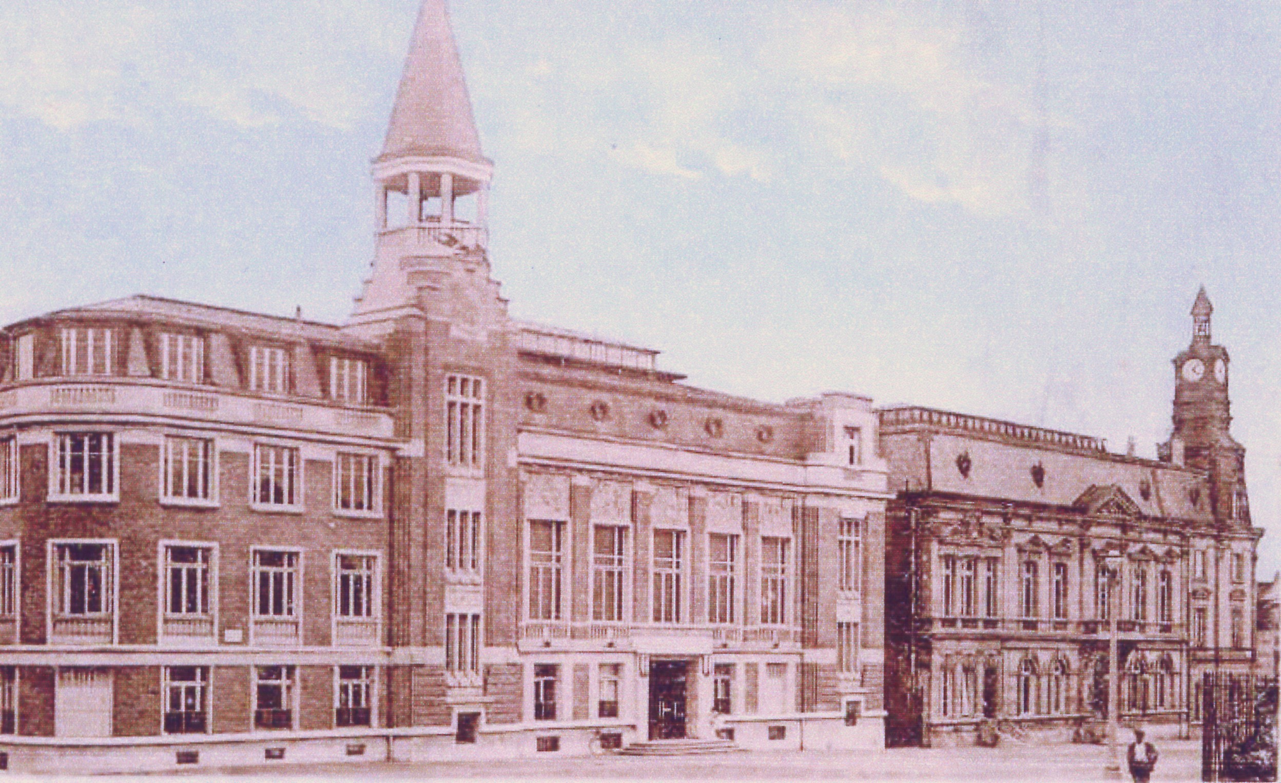 Les services annexes de celle-ci ont nécessité, en effet la construction d’un édifice en briques roses, couronné par un campanile. Un sculpteur, non j’ignore la nom, a taillé dans la pierre en bas relief au dessus des fenêtres du premier étage quatre trumeaux qui sont censés représenter la justice, le travail, la fidélité, la fraternité (disparus au cours du bombardement d’avril 1944 – ndlr). Des bâtiments anciens qui ne datent pas tout à fait d’un siècle, puisqu’une inscription gravée en chiffres romains au-dessus de l’entrée porte le millésime 1846, on a tout dit en énonçant cette simple date.