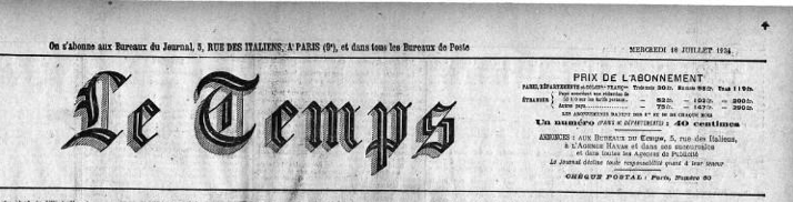 Léandre Vaillat. Le Temps, mercredi 18 juillet 1934, p.23.
