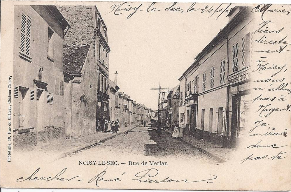 Non loin de la mairie, la place Jeanne d’Arc marque la croisée de la route départementale n°16, qui va de Paris à la gare du Raincy, avec la route départementale n°36, alias rue Anatole France et avenue Jean Jaurès, qui va de Romainville à Bondy. On les élargira. La route nationale n°186, qui va de Versailles à Choisy, et qui est prolongée, suivant le projet de M. Levaillant ingénieur en chef, jusqu’à Saint-Denis, de manière à parachever la première rocade de la banlieue parisienne, traverse Noisy-le-Sec à l’est. Une rectification permettra d’aller de Romainville à Villemomble en évitant au sud une agglomération assez dense. Ces projets, empreints de bon sens, ne risquent point de troubler par une mégalomanie hors de propos le paisible labeur des paysans de Merlan ni de bousculer leurs parterres de choux et de lis.