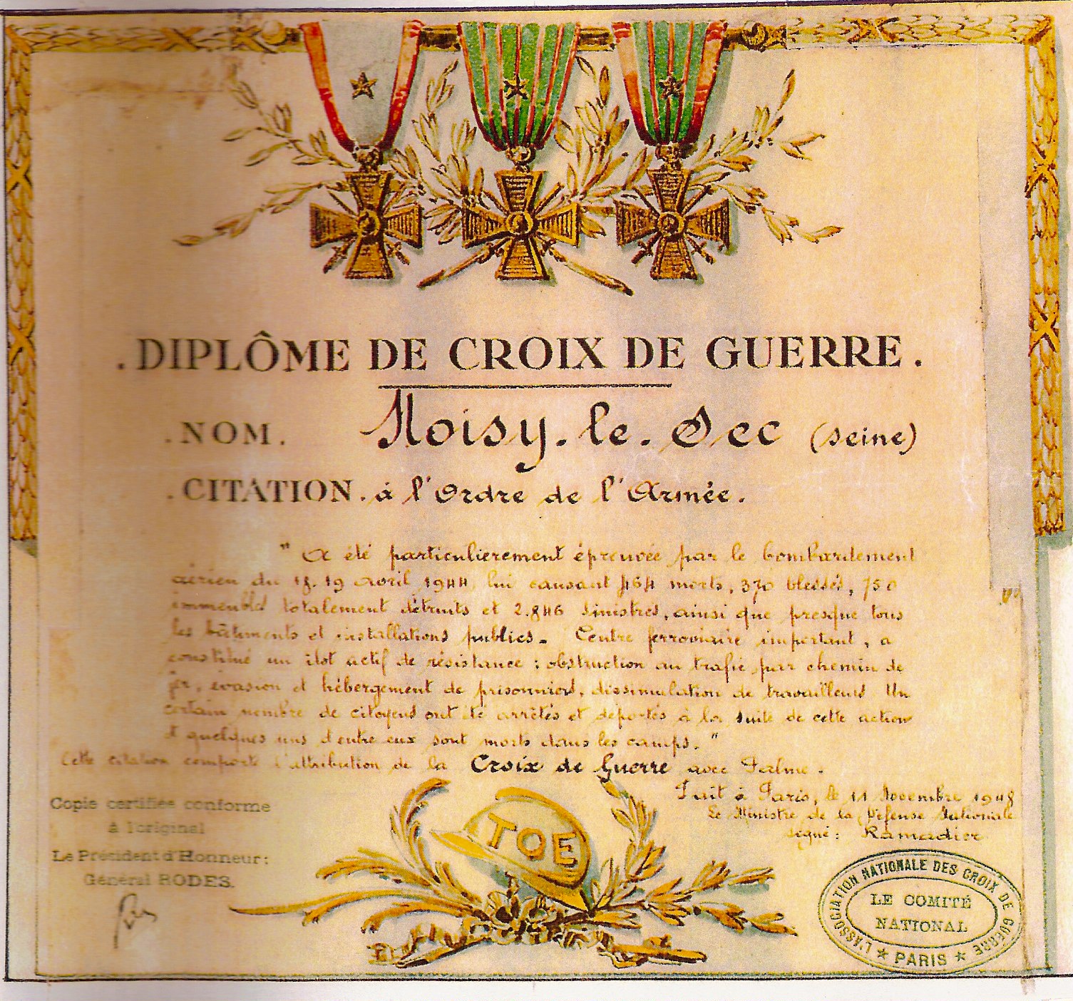 Le 5 novembre dernier, nous étions reçu par Monsieur D. habitant boulevard Michelet à Noisy. Il acceptait de nous livrer quelques souvenirs personnels : la libération de Paris aux côtés de sa future épouse, Place de la République puis son emménagement à Noisy-le-Sec. La cérémonie officielle, le 24 avril 1949 de remise de la Croix de Guerre à la ville… Et enfin les grands bals populaires qui égayaient jusque dans les années 80 la vie des habitants de Noisy.