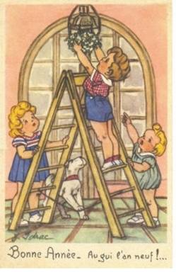 Le jour de l’an à minuit précisément, la tradition en Europe veut que l’on s’embrasse sous une branche de gui, symbole de prospérité et de longue vie. La saison voulant que le gui abonde, on en cueillit dès le Moyen-Âge pour l’offrir avec ce souhait : « Au gui l’an neuf », formule qui fut remplacée plus tard par « Bon an, mal an, Dieu soit céans » (soit dans la maison). Au XIXe siècle on disait « Bonne et sainte année, le paradis à la fin de vos jours », expression modernisée au XXe siècle en « Bonne et heureuse année ».