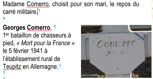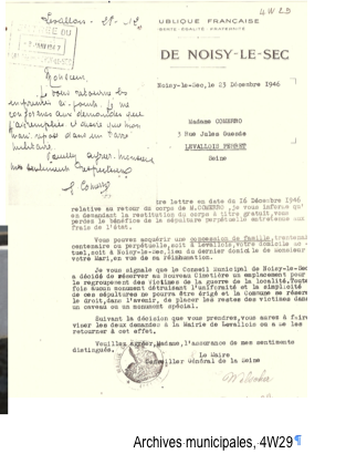Il n’y a pas de soldat de ce nom au carré militaire du nouveau cimetière. J’ai vu sur la fiche de Mémoires des hommes qu’il n’avait été reconnu mort pour la France qu’en 2008. Savez-vous pourquoi ?? Votre famille avait-elle un caveau de famille à Noisy ? Si tel est le cas, il est possible qu’il ait été enterré dans ce caveau. Si vous me confirmez ce dernier point, je peux faire des recherche à l’ancien cimetière.