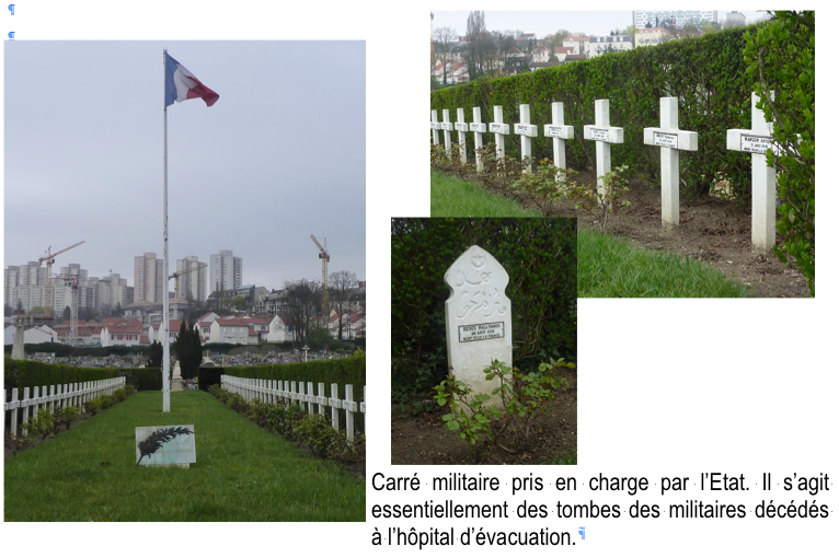 Carré militaire pris en charge par la Ville. Les tombes sont entretenues par la commune et le Souvenir Français. Le SOUVENIR FRANÇAIS est une association créée en 1887 et reconnu d’utilité publique depuis 1906. Sa devise est « A nous le souvenir, à eux l’immortalité »