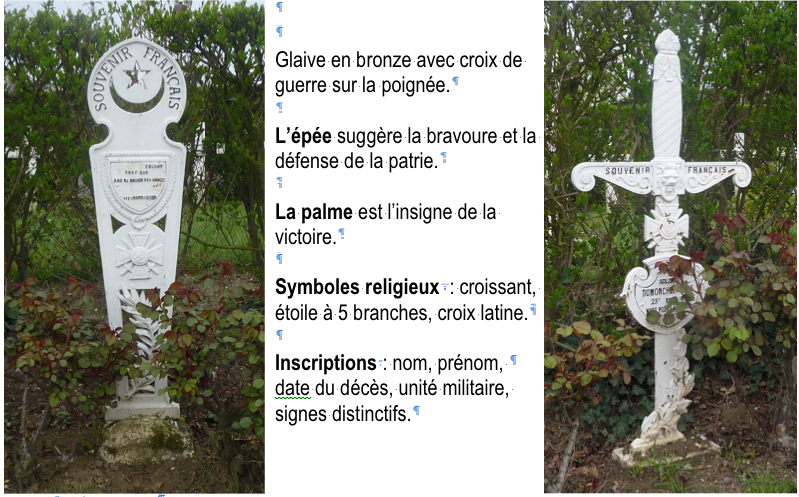 Au début du conflit, les sépultures individuelles sont réservées aux chefs de guerre. Les simples soldats sont inhumés dans des monuments ossuaires, puis sous la pression des poilus, le respect dû aux morts évolue.